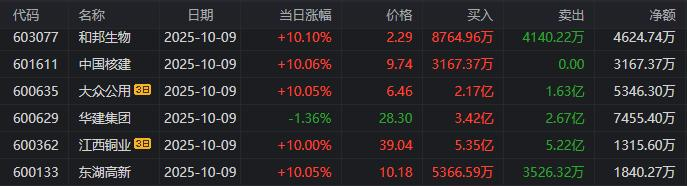 成都系:净买入中洲特材3974万元、中国核建3130万元