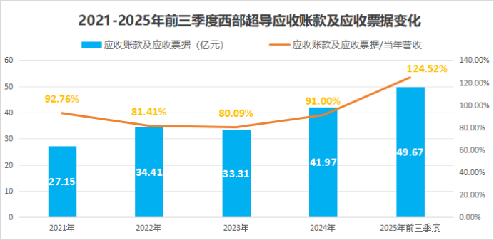 2024年,西部超导应收账款及票据41.97亿元,占当年营收的91%。2025年前三季度这一科目数额上升至49.67亿,已经超过公司当期营收额。