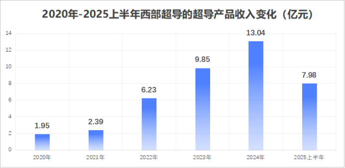 2020-2024年,公司超导产品收入从1.95亿增长至13.04亿。