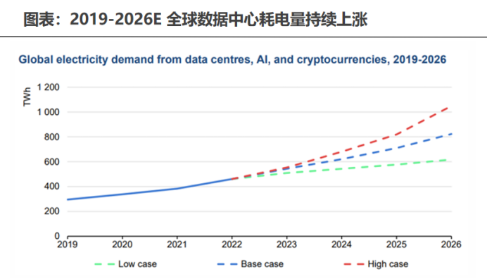 数据中心机架数量明显攀升,带动人工智能产业耗电量指数级增长。预计2026年全球数据中心耗电量可达810TWh,相当于8个三峡水电站全年满负荷的发电量!