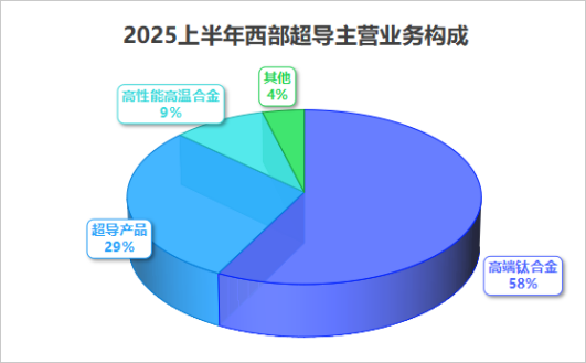 公司旗下覆盖超导产品、高端钛合金与高温合金三大业务,虽说超导产品领跑国内市场。不过,高端钛合金才是西部超导的营收“顶梁柱”,2025上半年营收占比接近60%。
