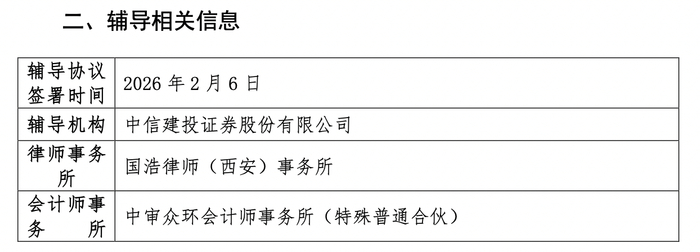 本次IPO的辅导机构为中信建投证券股份有限公司,律师事务所为国浩律师(西安)事务所,会计师事务所为中审众环会计师事务所(特殊普通合伙)。