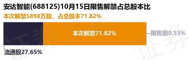 安达智能(688125)5898万股限售股将于10月15日解禁,占总股本71.82%