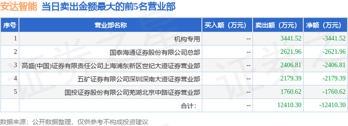 12月23日安达智能(688125)龙虎榜数据:机构净卖出3441.52万元