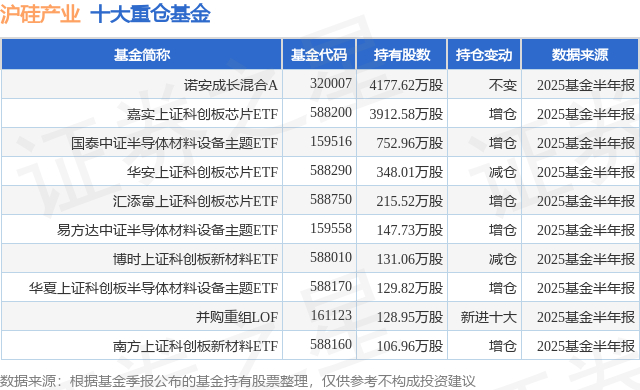 重仓沪硅产业的前十大公募基金请见下表: