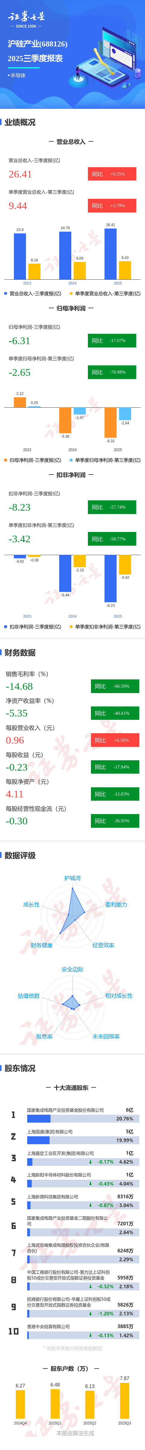 图解沪硅产业三季报:第三季度单季净利润同比下降78.99%