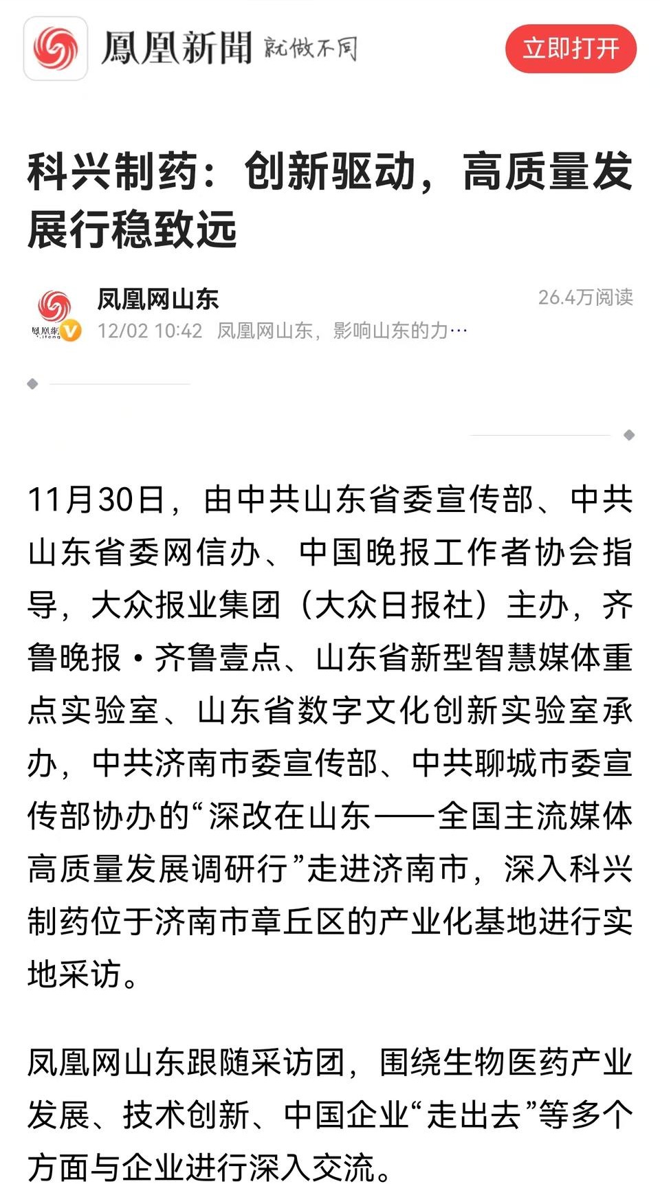 【凤凰网】科兴制药:创新驱动,高质量发展行稳致远
