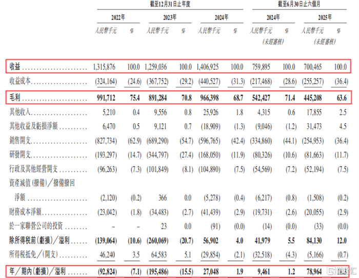 2022年及2023年,公司净利润亏损9280万元、1.96亿元,2024年及2025年上半年分别实现盈利2705万元、7896万元。