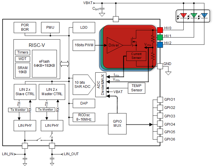 更灵活的通用GPIO引脚,助力成为更简洁的车身域控制平台。