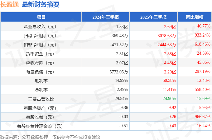 长盈通(688143)2025年三季报简析:营收净利润同比双双增长,应收账款上升
