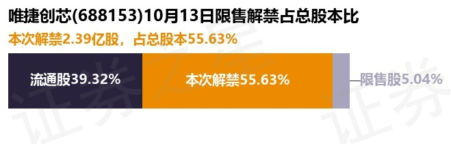 唯捷创芯(688153)2.39亿股限售股将于10月13日解禁,占总股本55.63%