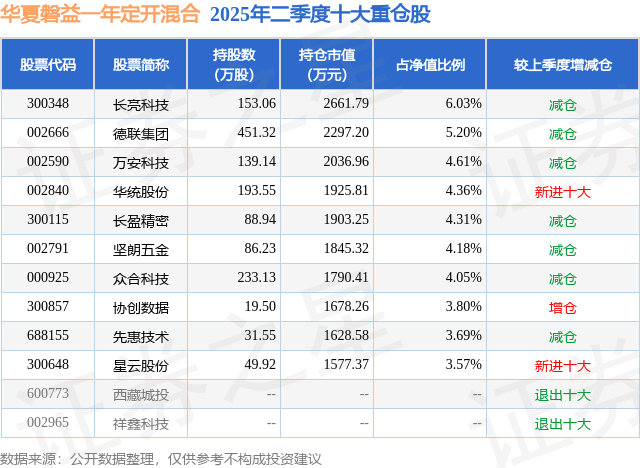 根据2025基金半年报公募基金重仓股数据,重仓该股的公募基金共10家,其中持有数量最多的公募基金为华夏基金的华夏磐益一年定开混合。华夏磐益一年定开混合目前规模为4.42亿元,最新净值1.4645(10月9日),较上一交易日上涨0.18%,近一年上涨46.63%。该公募基金现任基金经理为张城源。张城源在任的基金产品包括:华夏磐泰混合(LOF)A,管理时间为2016年12月26日至今,期间收益率为78.7%;华夏磐利一年定开混合A,管理时间为2020年7月29日至今,期间收益率为89.3%;华夏磐锐一年定开混合A,管理时间为2020年12月22日至今,期间收益率为81.32%;