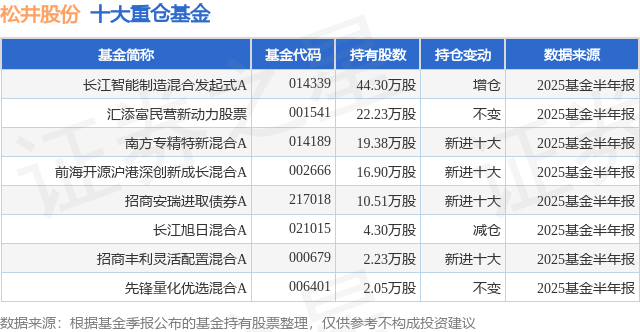 根据2025基金半年报公募基金重仓股数据,重仓该股的公募基金共8家,其中持有数量最多的公募基金为长江证券(上海)资管的长江智能制造混合发起式A。长江智能制造混合发起式A目前规模为3.57亿元,最新净值1.408(10月15日),较上一交易日上涨0.85%,近一年上涨37.77%。该公募基金现任基金经理为施展。施展在任的基金产品包括:长江旭日混合A,管理时间为2024年7月24日至今,期间收益率为40.63%。