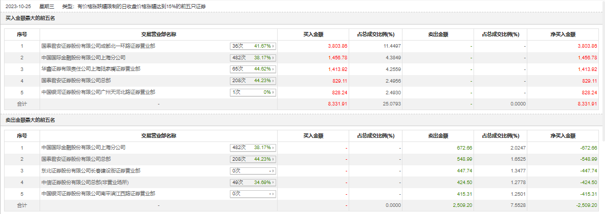 10月25日,优刻得-W今日涨停,全天换手率达5.72%,振幅达13.43%。龙虎榜数据显示,营业部席位合计净买入5822.7万元。其中,国泰君安证券成都北一环路证券营业部、中国国际金融上海分公司分别买入3803.86万元、1456.78万元;中国国际金融上海分公司、国泰君安证券总部分别卖出672.66万元、548.99万元。