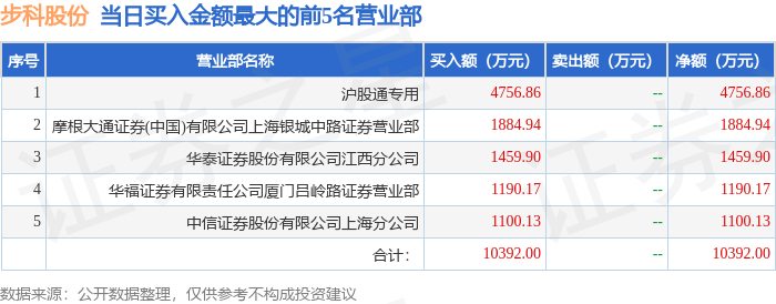 12月30日步科股份(688160)龙虎榜数据:游资瑞鹤仙上榜