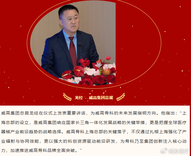 正如威高集团副总裁、骨科董事长陈敏所说,上海总部是“发展历程中具有战略意义的新起点”,"是威高骨科在清晰的十年战略愿景指引下的关键落子",将推动“营销、研发、生产、人才与管理”四大核心维度的全面革新。