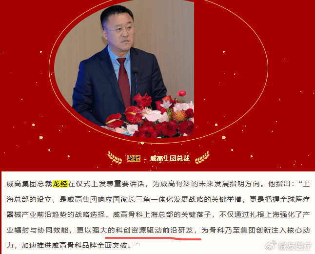 现在威高骨科字新起点,重点是“创新突破”与“全球布局”。
