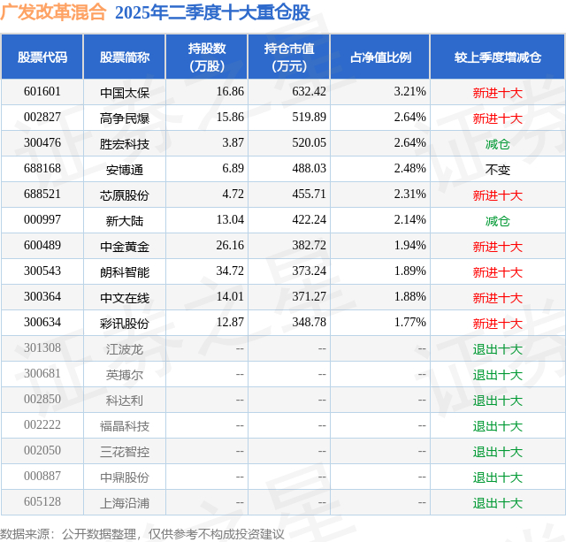 根据2025基金半年报公募基金重仓股数据,重仓该股的公募基金共1家,其中持有数量最多的公募基金为广发基金的广发改革混合。广发改革混合目前规模为1.97亿元,最新净值1.059(9月9日),较上一交易日下跌1.76%,近一年上涨38.43%。该公募基金现任基金经理为陈少平。