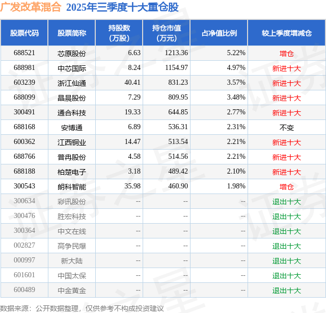 根据2025基金Q3季报公募基金重仓股数据,重仓该股的公募基金共1家,其中持有数量最多的公募基金为广发基金的广发改革混合。广发改革混合目前规模为2.33亿元,最新净值1.053(11月20日),较上一交易日下跌1.13%,近一年上涨18.05%。该公募基金现任基金经理为陈少平。