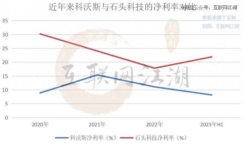 一直以来,科沃斯与石头科技的净利率都相差很大。比如从2020到2022再到今年上半年,科沃斯的净利率分别为8.9%、15.39%、11.1%和8.17%,整体明显低于同期石头科技30.23%、24.03%、17.85%和21.92%的净利率表现。