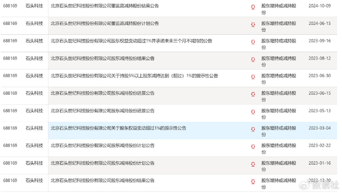 昌敬带头减持石头科技股份。