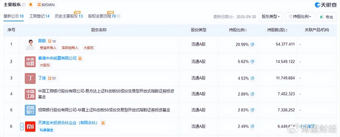 与此同时,机构投资者也在撤离。小米系资本天津金米投资持股比例从2023年的6.17%逐步降至2025年9月的2.49%,累计退出获利超40亿元。产业资本和财务投资者的同步减持,向市场传递了强烈的看空信号。