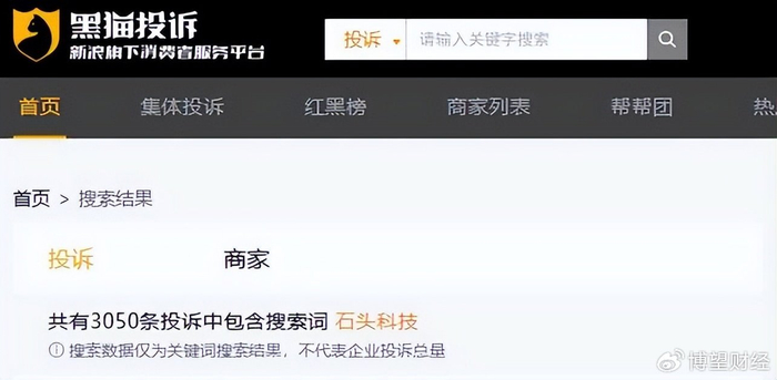 在消费者端,信任问题同样存在。据黑猫投诉[下载黑猫投诉客户端]平台显示,截止2026年1月11日,对石头科技的累计投诉已超过3000条,涉及产品质量、售后服务等多个方面,暴露出其品控和服务体系的短板。