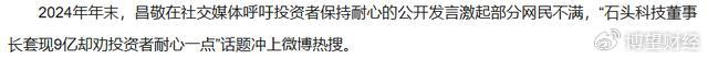 尤为引发市场诟病的是,昌敬在套现后却在社交媒体呼吁投资者“保持耐心”,导致“石头科技董事长套现9亿却劝投资者耐心一点”话题冲上微博热搜。这种言行不一的做法,被市场解读为对公司前景缺乏信心,加剧了投资者疑虑。