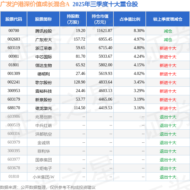 广发沪港深价值成长混合A的前十大重仓股如下: