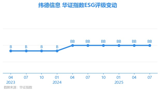 日前,华证指数公布了新一期(2025年7月31日)的ESG评级结果,纬德信息(688171.SH)获得BB评级(华证指数评级为C起至AAA九档,C为最低档,AAA为其最高一级评级/AA为其第二档),上一期(2025年4月30日)ESG评级为BB。本期ESG评级在143家信息技术服务行业A股上市公司中排名第61(上一期排名第70)。