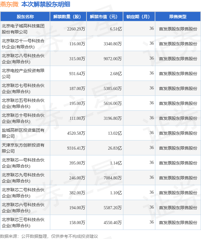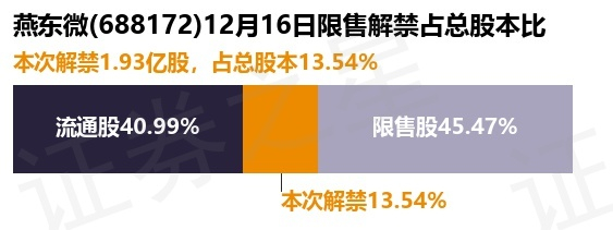燕东微(688172)1.93亿股限售股将于12月16日解禁,占总股本13.54%