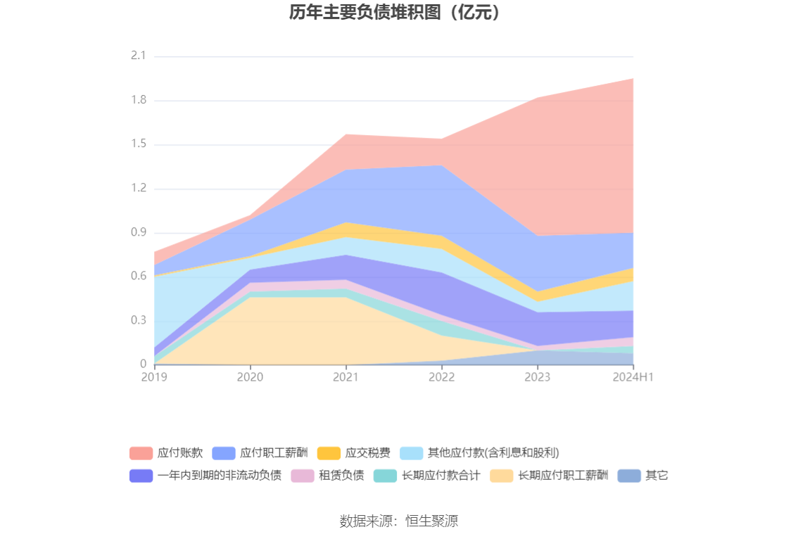 负债重大变化方面,截至2024年上半年末,公司其他应付款(含利息和股利)较上年末增加193.89%,占公司总资产比重上升0.75个百分点;应付职工薪酬较上年末减少35.15%,占公司总资产比重下降0.56个百分点;应付账款较上年末增加12.21%,占公司总资产比重上升0.99个百分点;一年内到期的非流动负债较上年末减少22.78%,占公司总资产比重下降0.19个百分点。