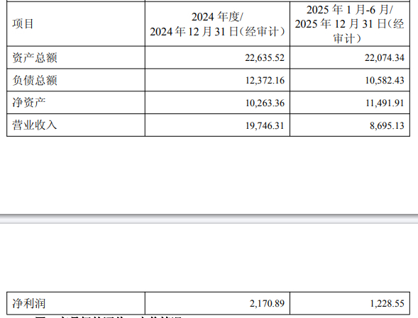 交易标的诚芯微2024年度与2025年1至6月营收分别为1.97亿元、8695.13万元,净利润分别为2170.89万元、1228.55万元。