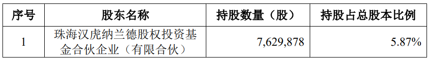 公告显示,珠海汉虎纳兰德股权投资基金合伙企业(有限合伙)非公司控股股东、实际控制人、董事及高级管理人员。本次询价转让不通过集中竞价交易或大宗交易方式进行,不属于通过二级市场减持,受让方通过询价转让受让的股份,在受让后6个月内不得转让。本次询价转让的受让方为具备相应定价能力和风险承受能力的机构投资者。