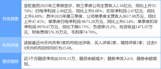 2025年9月3日,太平洋研究员周豫,戎晓婕发布了对亚虹医药的研报《收入同比增长62%,APL-1702国内审评进展顺利》,该研报对亚虹医药给出“买入”评级,认为其目标价为15.68元,研报发布时股价为12.35元,预期涨幅为26.96%。证券之星数据中心根据近三年发布的研报数据计算,该研报作者对此股的盈利预测准确度为73.22%。