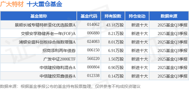 根据2025基金Q3季报公募基金重仓股数据,重仓该股的公募基金共7家,其中持有数量最多的公募基金为景顺长城基金的景顺长城专精特新量化优选股票A。景顺长城专精特新量化优选股票A目前规模为5.63亿元,最新净值0.9278(11月20日),较上一交易日下跌0.53%,近一年上涨34.0%。该公募基金现任基金经理为徐喻军 曾理。徐喻军在任的基金产品包括:景顺长城量化平衡混合A,管理时间为2017年12月27日至今,期间收益率为42.05%;景顺长城中证500指数增强A,管理时间为2019年3月25日至今,期间收益率为70.94%;景顺长城量化成长演化混合A,管理时间为2022年2月19日至今,期间收益率为11.65%。曾理在任的基金产品包括:景顺长城中证500行业中性低波动指数A,管理时间为2019年7月16日至今,期间收益率为78.69%;景顺长城沪港深红利成长低波指数A,管理时间为2019年9月6日至今,期间收益率为77.95%;景顺长城领先回报混合A,管理时间为2022年2月19日至今,期间收益率为10.8%。