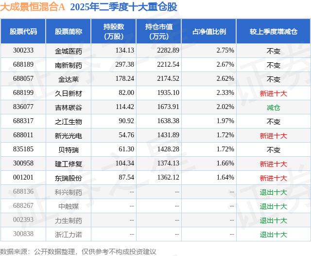 根据2025基金半年报公募基金重仓股数据,重仓该股的公募基金共1家,其中持有数量最多的公募基金为大成基金的大成景恒混合A。大成景恒混合A目前规模为3.97亿元,最新净值3.4781(10月14日),较上一交易日下跌0.4%,近一年上涨59.69%。该公募基金现任基金经理为苏秉毅。苏秉毅在任的基金产品包括:大成核心双动力混合A,管理时间为2016年3月4日至今,期间收益率为89.19%;大成卓享一年持有混合A,管理时间为2023年4月25日至今,期间收益率为11.99%;大成丰享回报混合A,管理时间为2024年1月29日至今,期间收益率为13.8%。