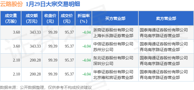 证券之星消息,1月29日云路股份发生大宗交易,交易数据如下: