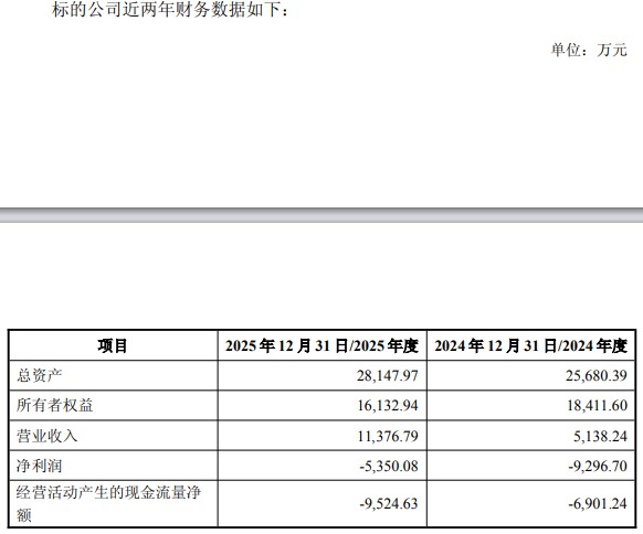 2024年度、2025年度,灵明光子营业收入分别为5,138.24万元、11,376.79万元,净利润分别为-9,296.70万元、-5,350.08万元,经营活动产生的现金流量净额分别为-6,901.24万元、-9,524.63万元。