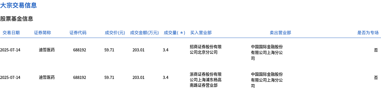 迪哲医药今日大宗交易折价成交6.8万股,成交额406.02万元