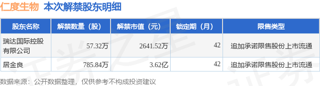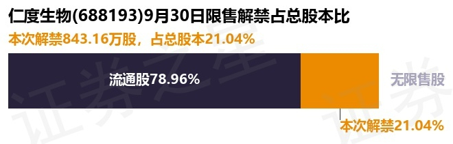 仁度生物(688193)843.16万股限售股将于9月30日解禁,占总股本21.04%