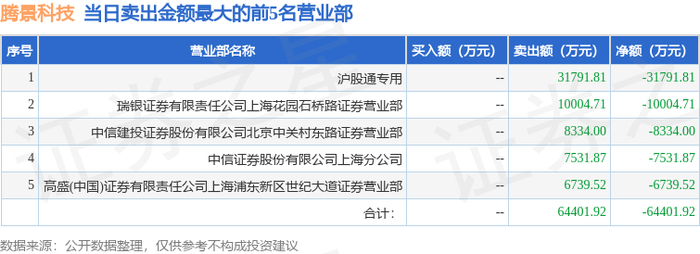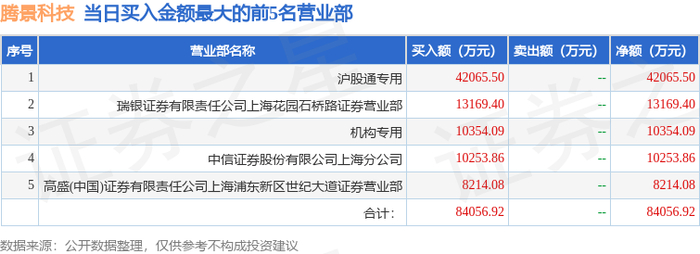 11月19日腾景科技(688195)龙虎榜数据:机构净买入1.04亿元,北向资金净买入1.03亿元