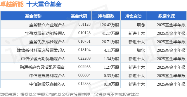 重仓卓越新能的公募基金请见下表: