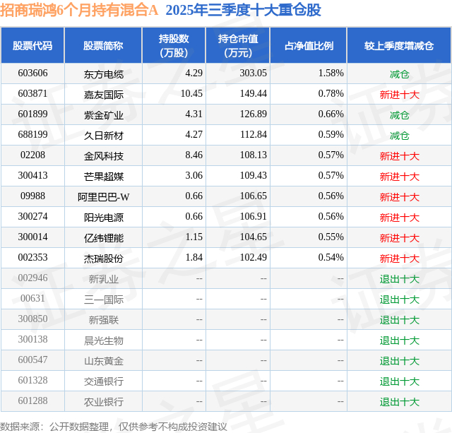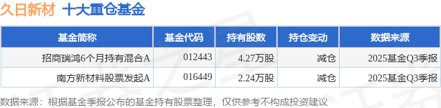 根据2025基金Q3季报公募基金重仓股数据,重仓该股的公募基金共2家,其中持有数量最多的公募基金为招商基金的招商瑞鸿6个月持有混合A。招商瑞鸿6个月持有混合A目前规模为1.72亿元,最新净值1.0619(11月20日),较上一交易日下跌0.19%,近一年上涨4.56%。该公募基金现任基金经理为余芽芳 阳宜洋。余芽芳在任的基金产品包括:招商瑞庆混合A,管理时间为2017年4月13日至今,期间收益率为63.25%;招商瑞文混合A,管理时间为2019年9月11日至今,期间收益率为30.91%;招商瑞恒一年持有期混合A,管理时间为2020年5月22日至今,期间收益率为18.15%;招商瑞信稳健配置混合A,管理时间为2020年6月2日至今,期间收益率为31.75%。