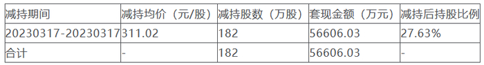 两名股东合计减持不超过2,721,400股,即不超过公司总股本的2.01%。按上一交易日公司收盘价200.05元计算,上述股东拟减持套现合计约544,416,070元。其中,控股股东芯华控股拟套现约542,135,500元。