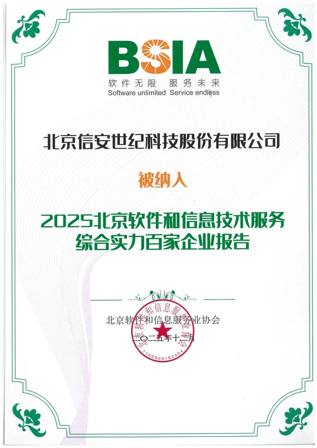四大荣誉加冕丨信安世纪荣获北京软协“综合实力百家企业”等多项殊荣