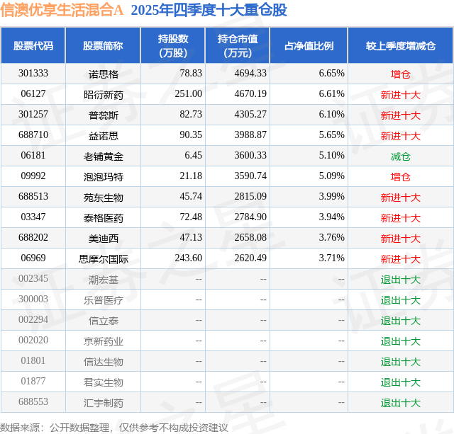 根据2025基金年报公募基金重仓股数据,重仓该股的公募基金共3家,其中持有数量最多的公募基金为信达澳亚基金的信澳优享生活混合A。信澳优享生活混合A目前规模为1.67亿元,最新净值1.2286(1月23日),较上一交易日上涨2.42%,近一年上涨61.83%。该公募基金现任基金经理为杨珂。