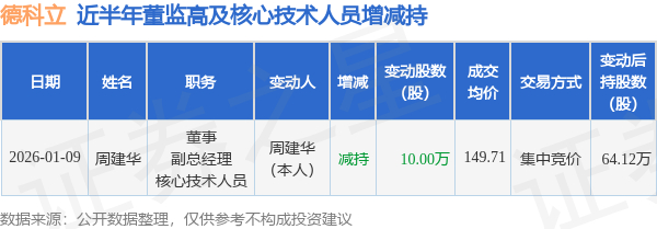 德科立近半年内的董监高及核心技术人员增减持详情如下: