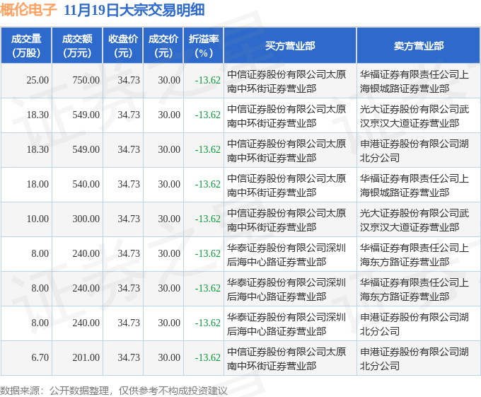 11月19日概伦电子现9笔折价13.62%的大宗交易 合计成交3609万元