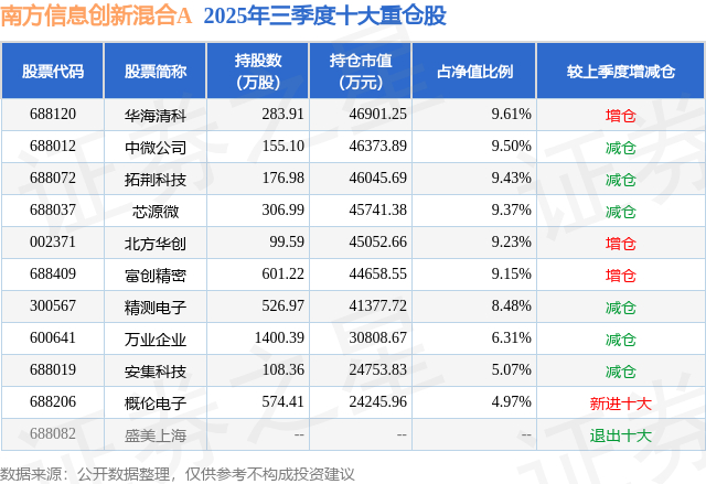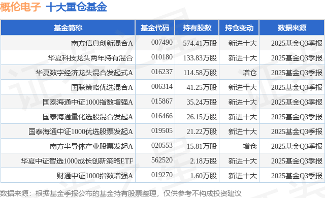 根据2025基金Q3季报公募基金重仓股数据,重仓该股的公募基金共14家,其中持有数量最多的公募基金为南方基金的南方信息创新混合A。南方信息创新混合A目前规模为34.77亿元,最新净值2.4307(11月20日),较上一交易日下跌2.44%,近一年上涨29.37%。该公募基金现任基金经理为郑晓曦。郑晓曦在任的基金产品包括:南方科创板3年定开混合,管理时间为2024年1月12日至今,期间收益率为72.77%;南方半导体产业股票发起A,管理时间为2024年4月30日至今,期间收益率为91.65%。